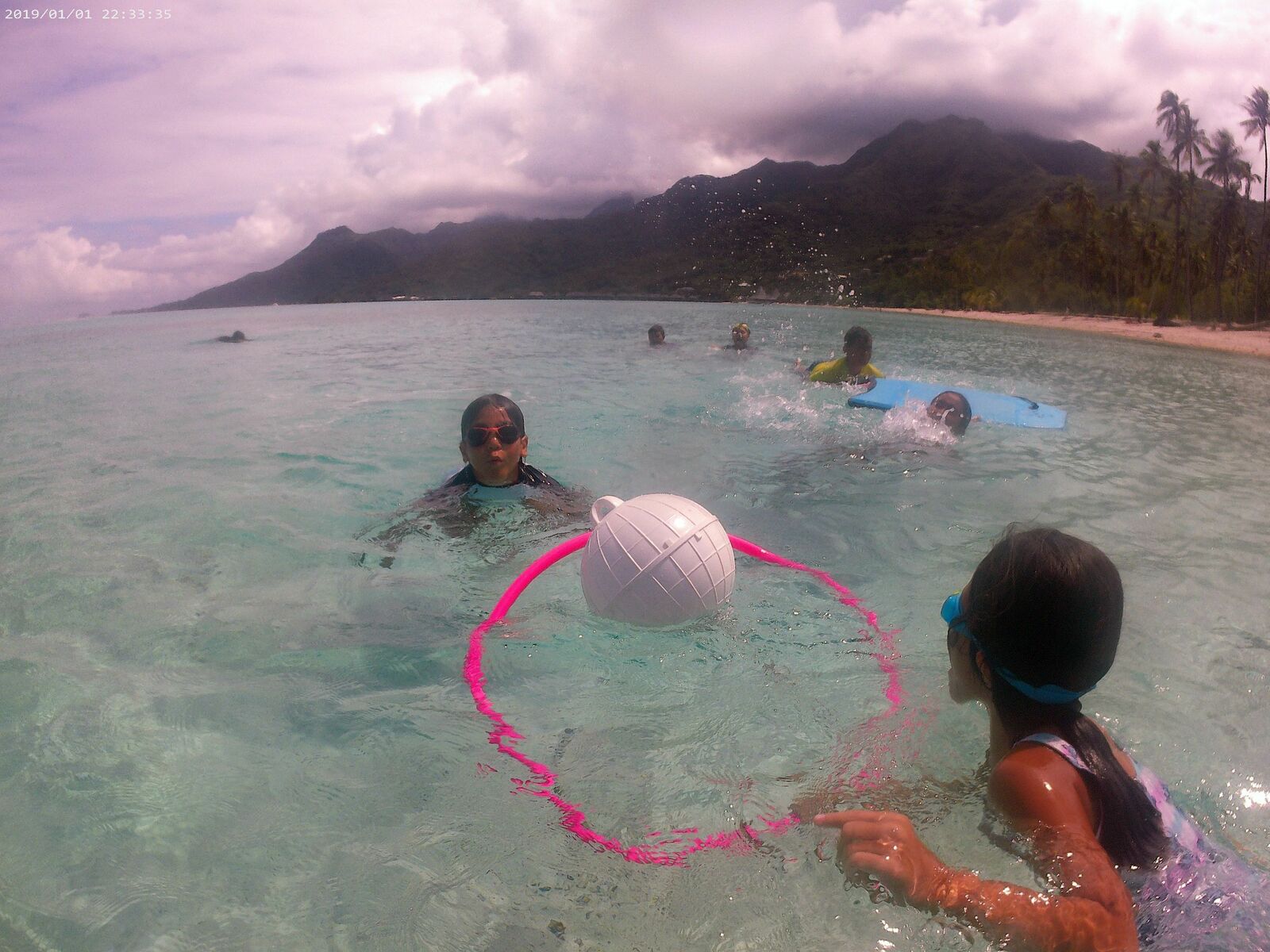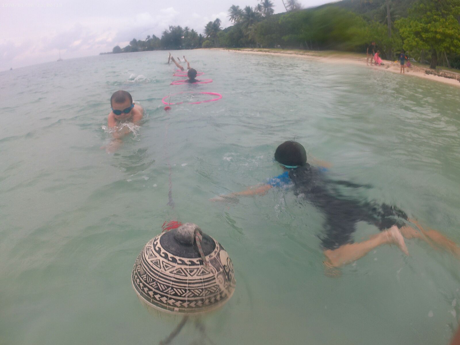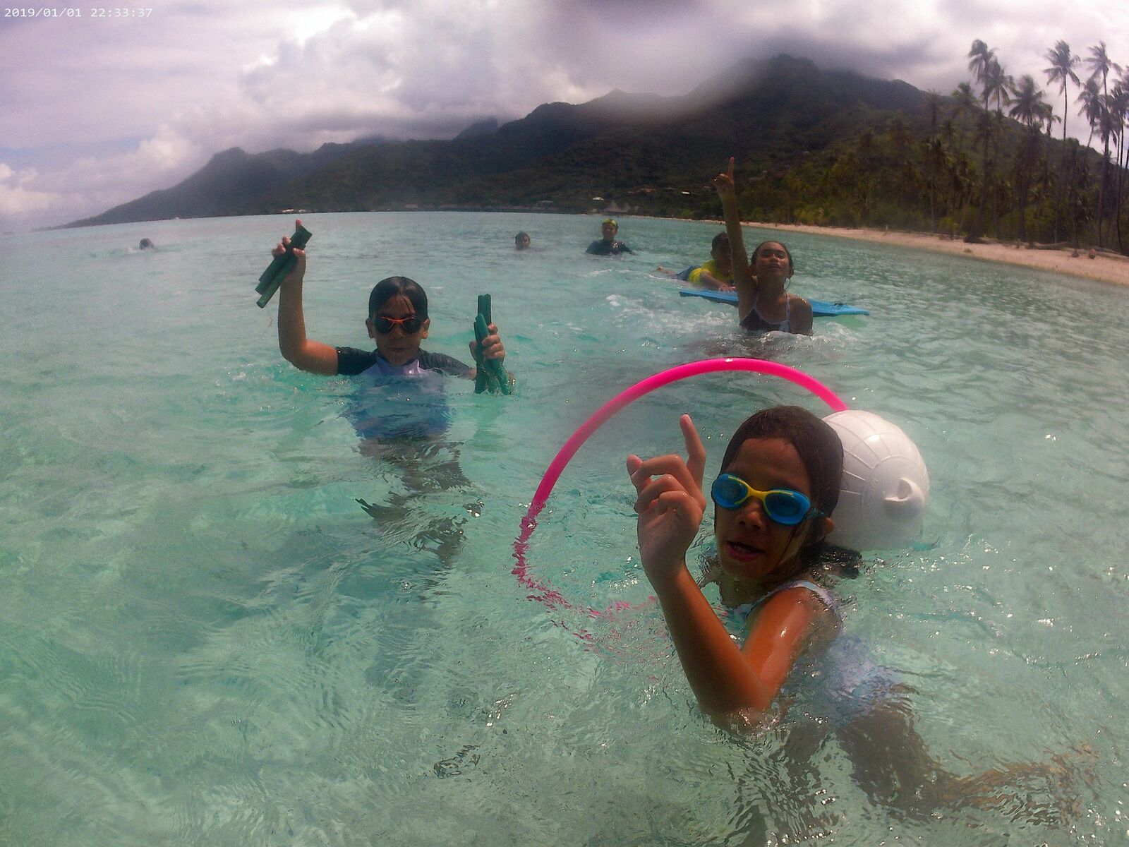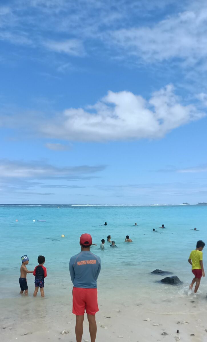 Ce qui a permis aux enfants de Teavaro de venir sur la plage publique de Temae propice à cet enseignement, et ce depuis 4 semaines maintenant.