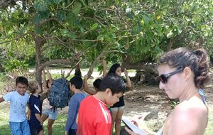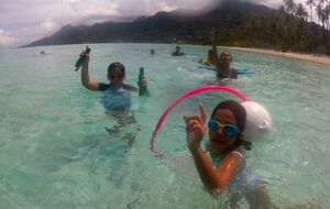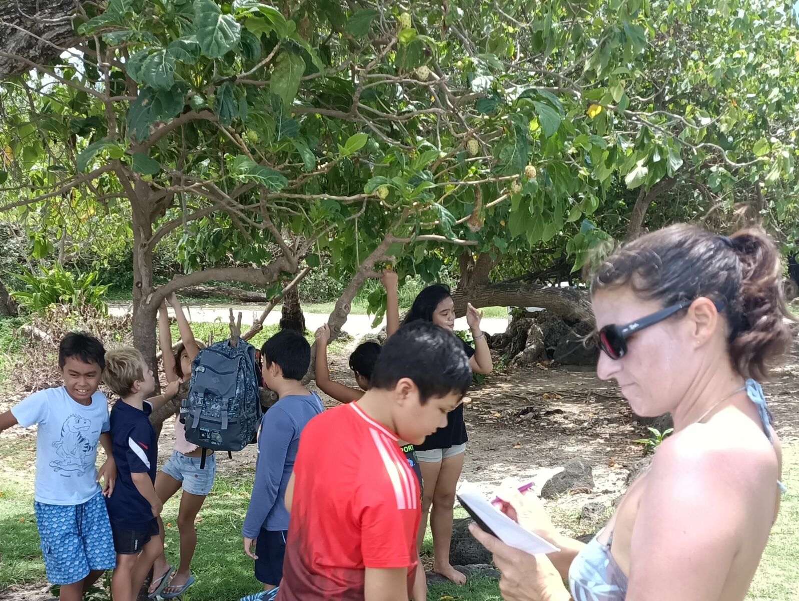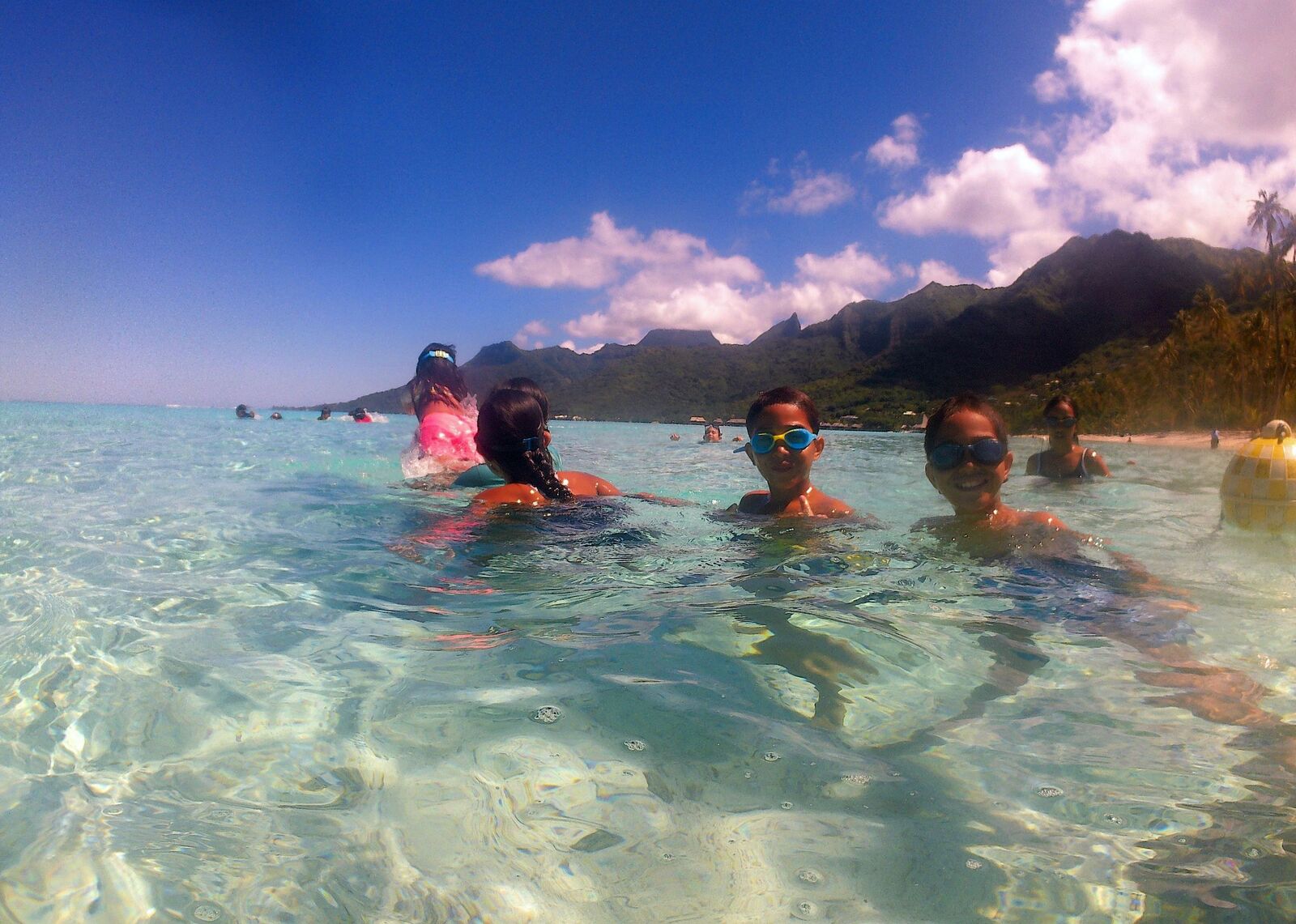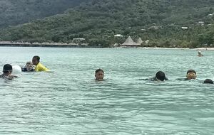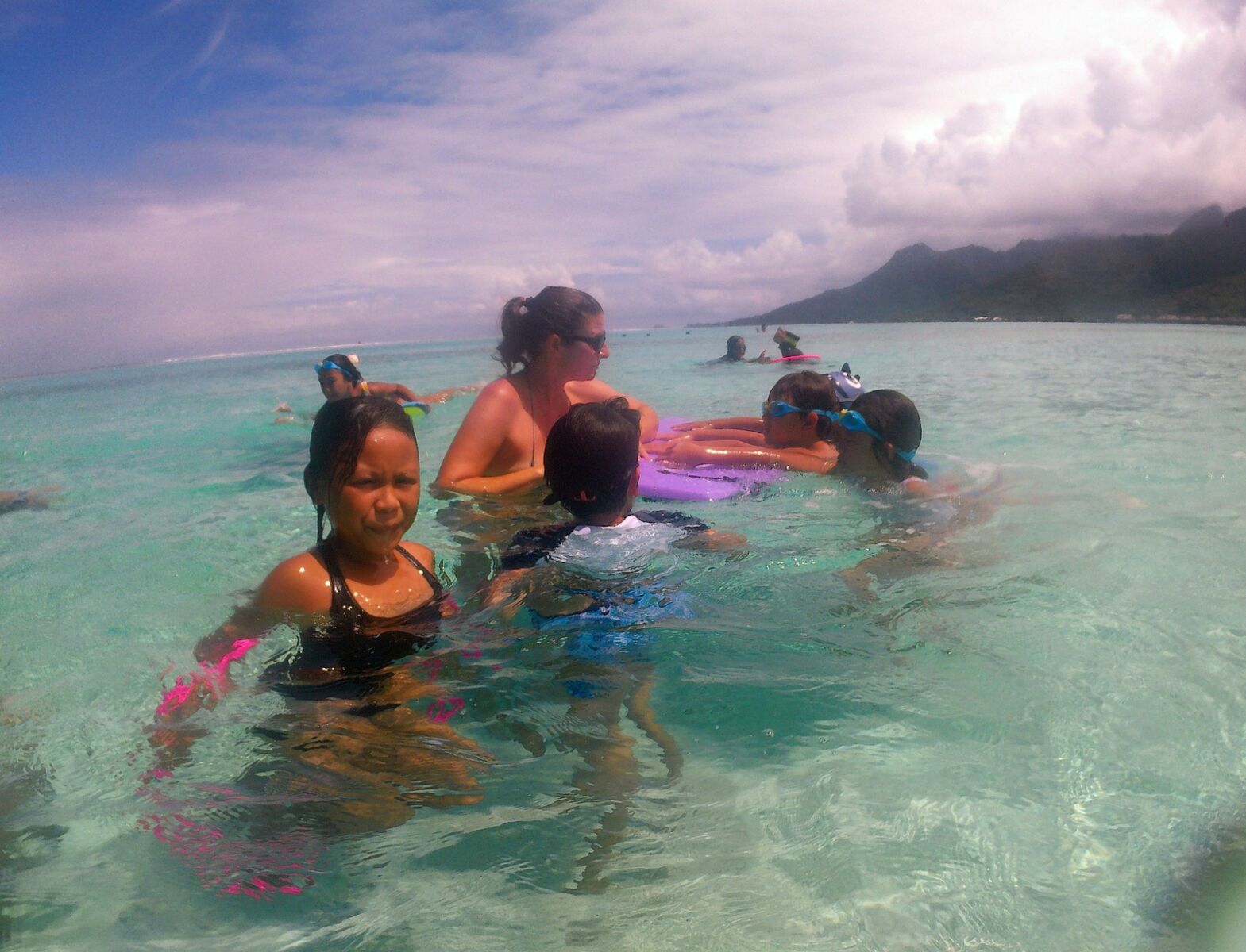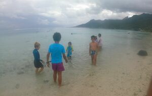 Ce qui a permis aux enfants de Teavaro de venir sur la plage publique de Temae propice à cet enseignement, et ce depuis 4 semaines maintenant.
