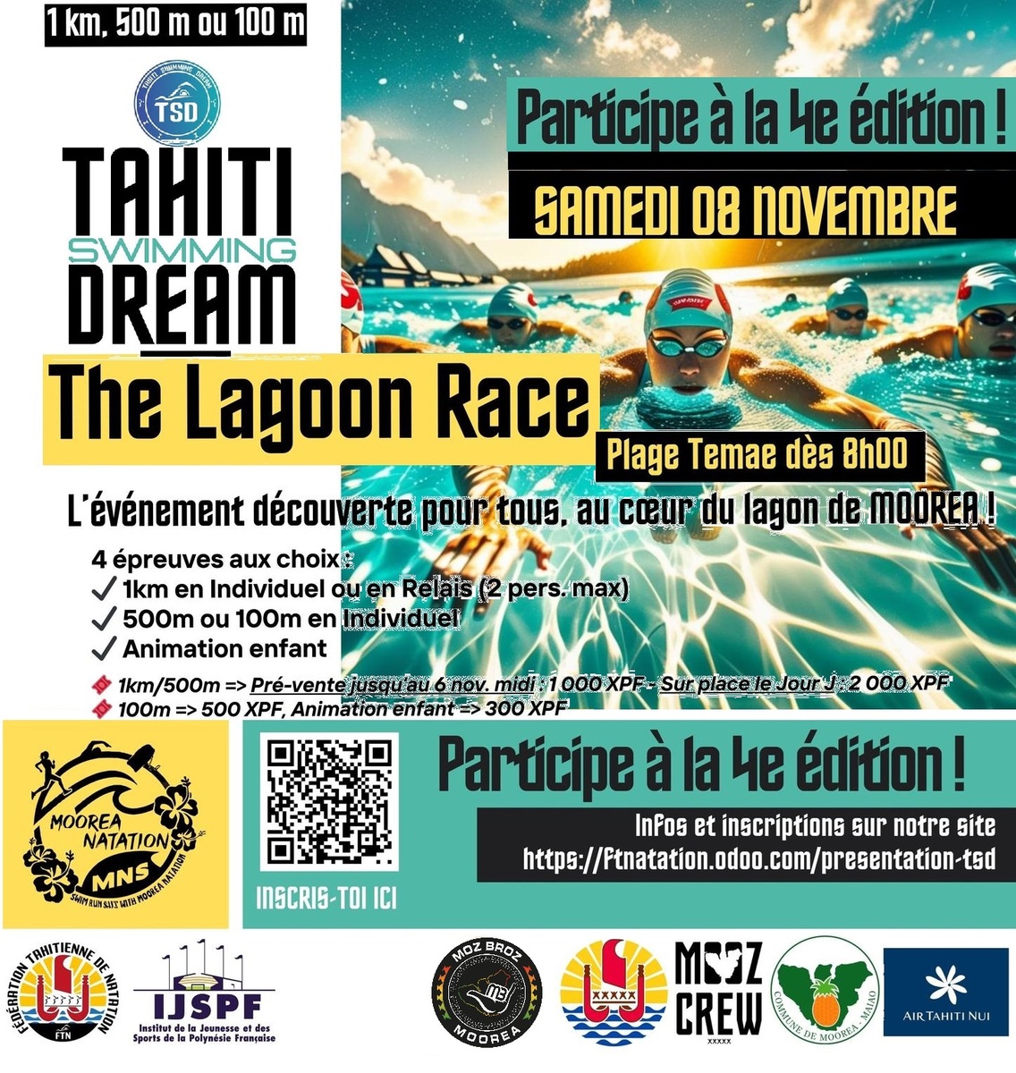 To mark the 4th edition of the Tahiti Swimming Dream, the Moorea Swimming Club and the Tahitian Swimming Federation are organizing an event on Temae Beach on the morning of the arrival of the swimmers in the great race between Tahiti and Moorea.