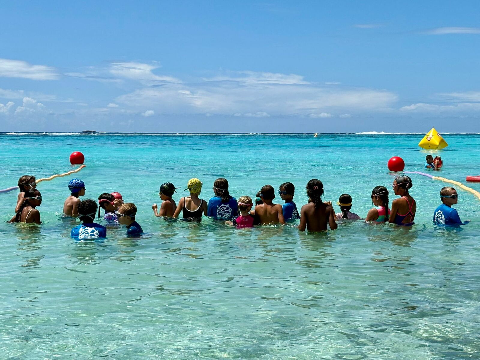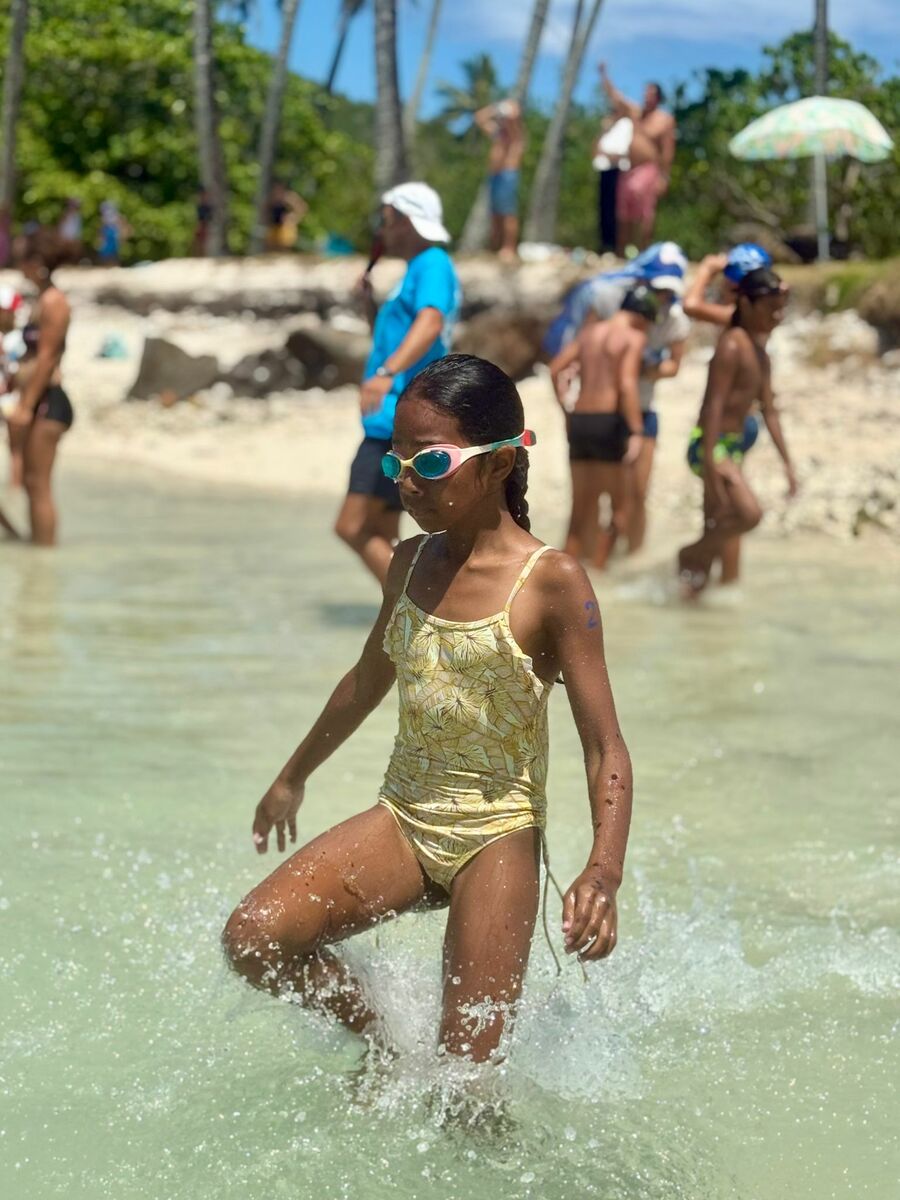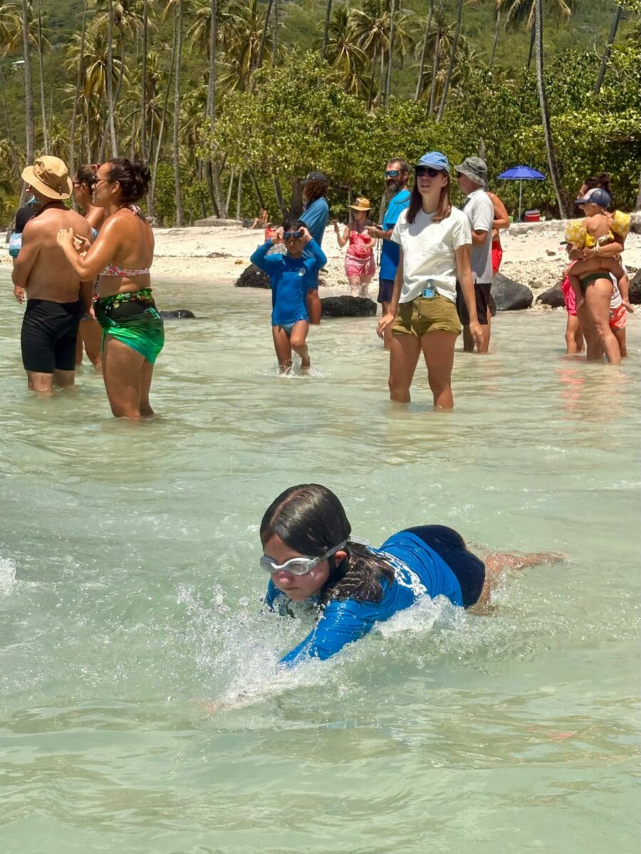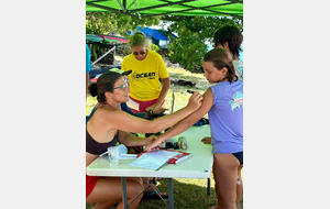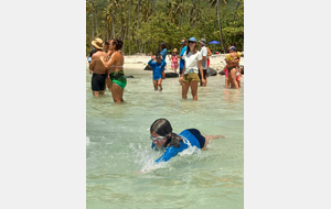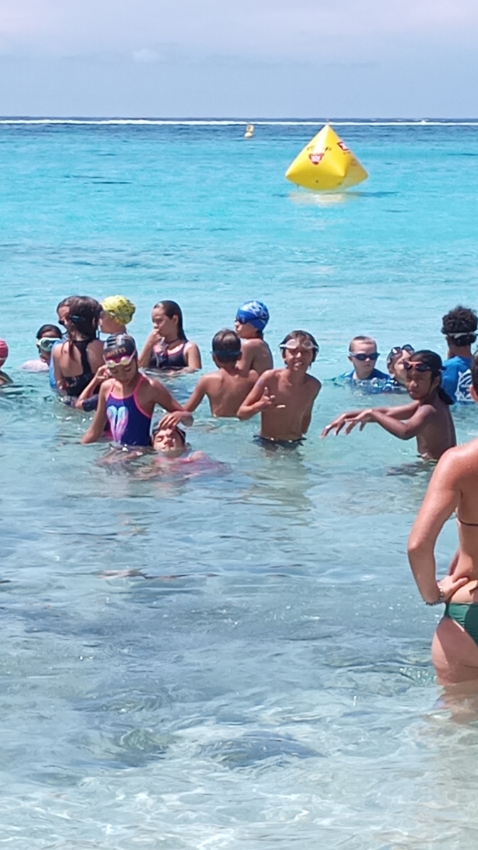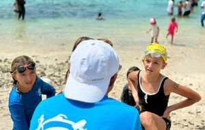 Jeu aquatique de type aller chercher un objet sous l’eau à moins de 25m de la plage sur 5min.