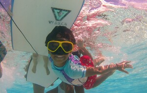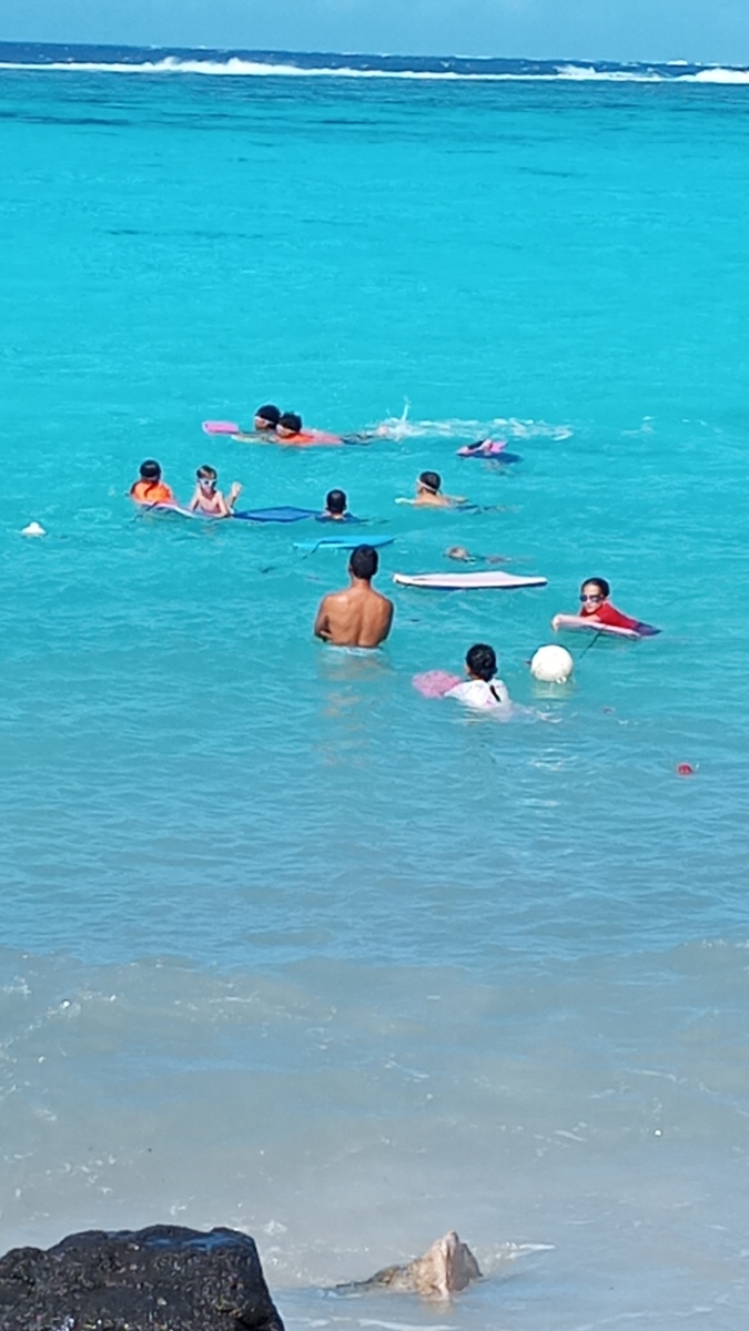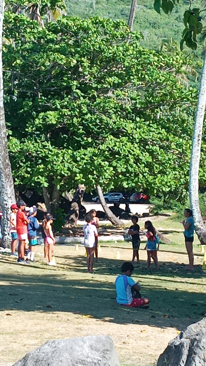 Dernier stage de la saison avec deux groupes de niveau. Des jeux collectifs pour les plus jeunes et de l'entrainement dans le courant et dans la cocoteraie pour les plus agés. Des enfants avaient gagné leur participation lors de l'aquathlon de toutes les écoles de Moorea qui avait eu lieu le 22 mai. Enfin jeudi, nous sommes allé marché sur la randonnée de Temae.